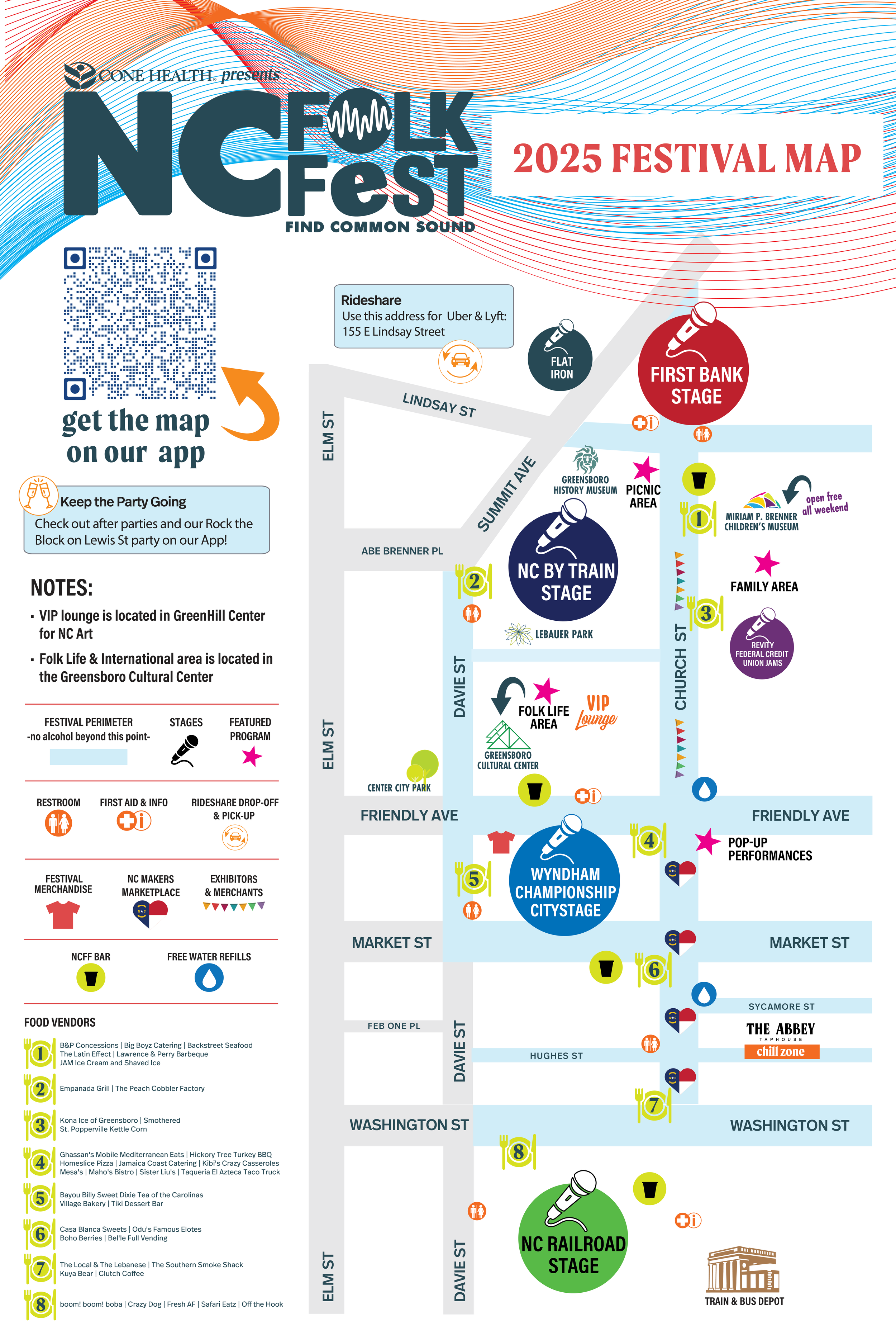 The NC Folk Festival, returning to downtown Greensboro September 12-14, has released its official food truck map, showcasing the wide variety of flavors that will be available throughout the festival grounds.